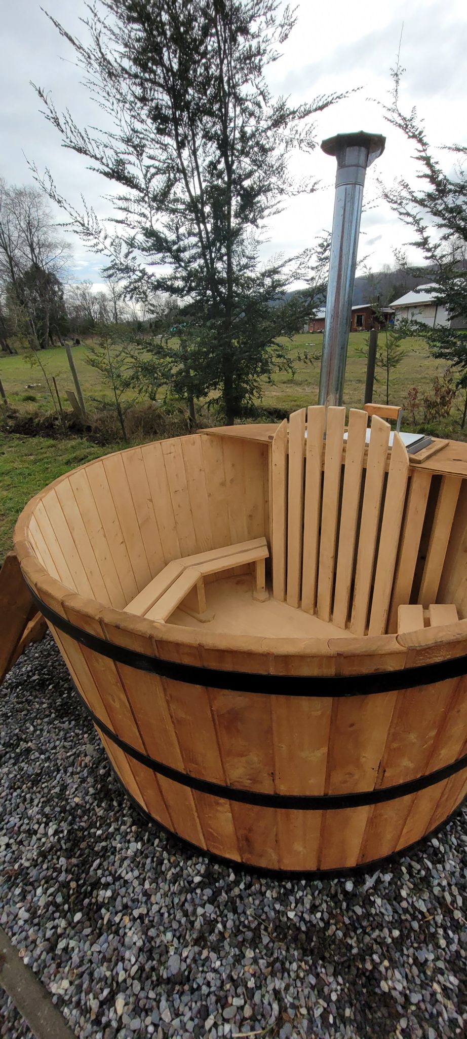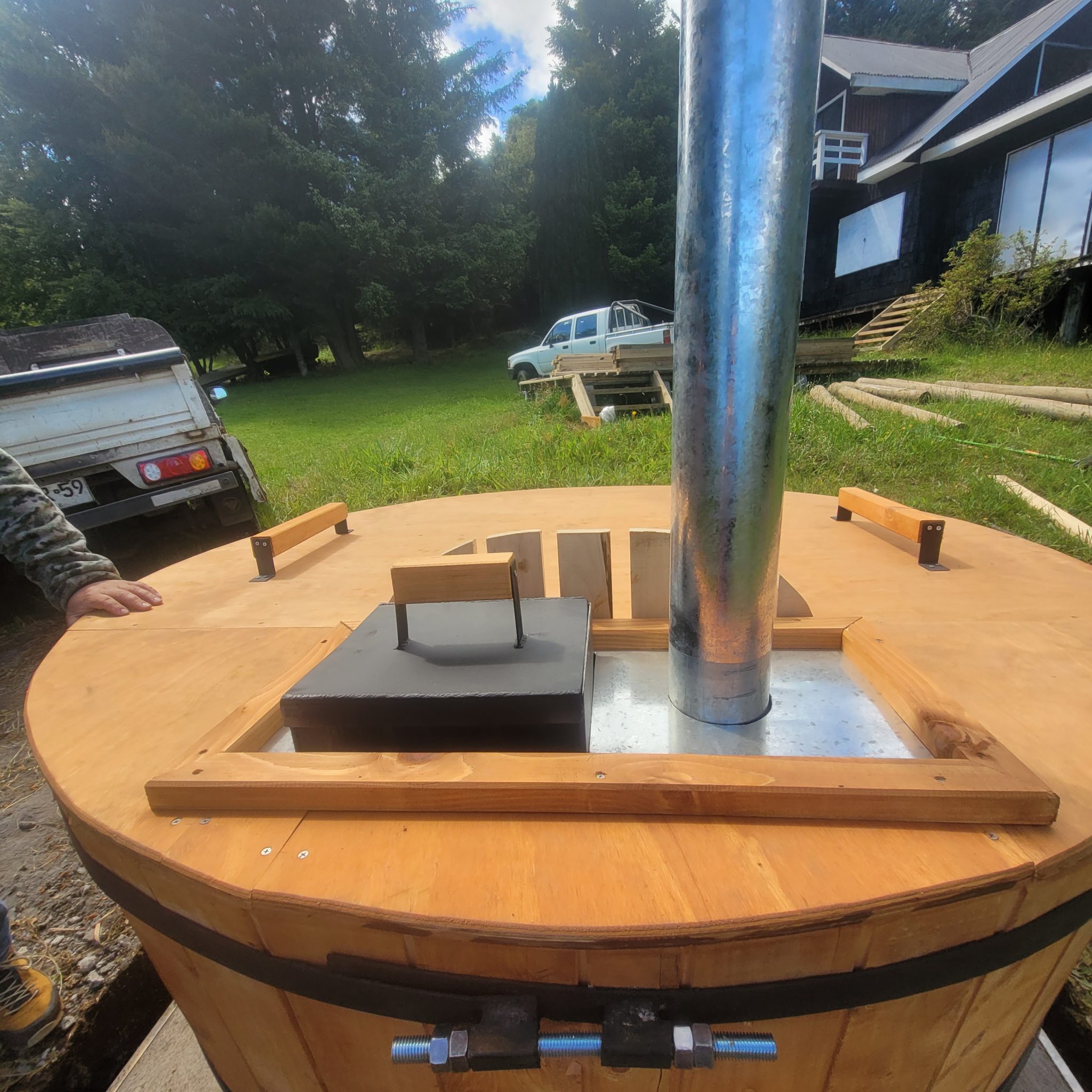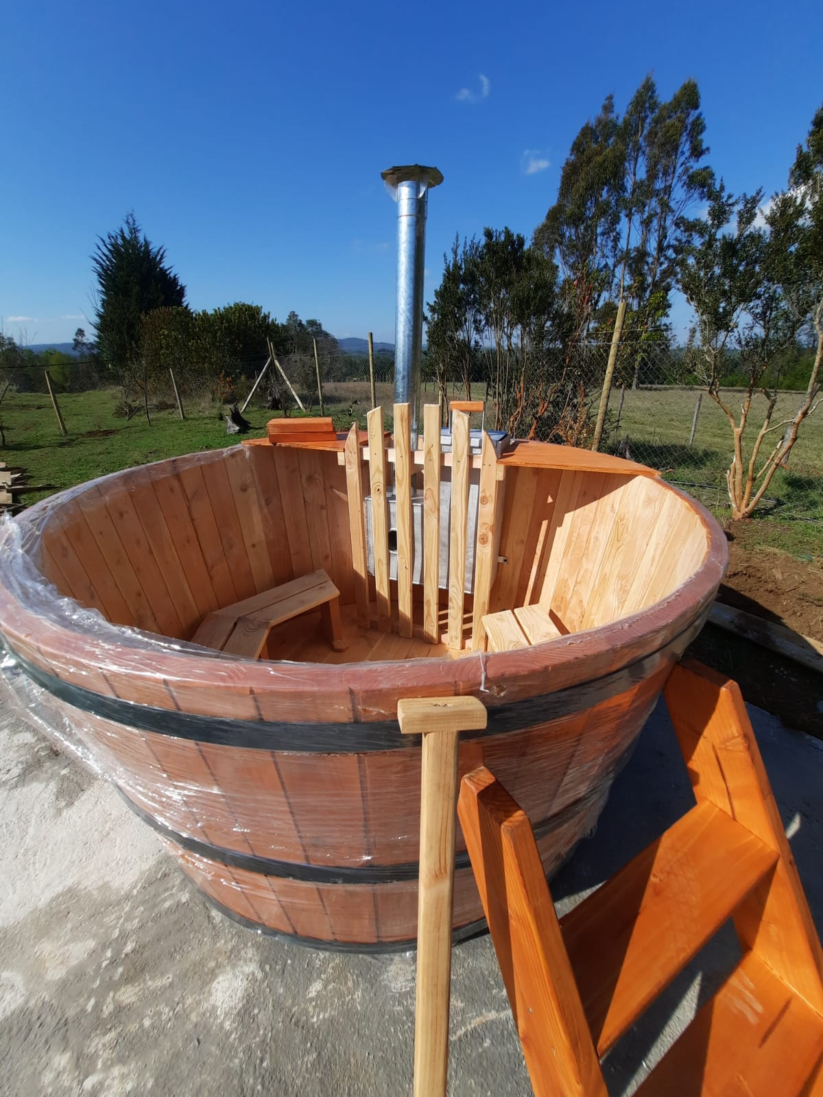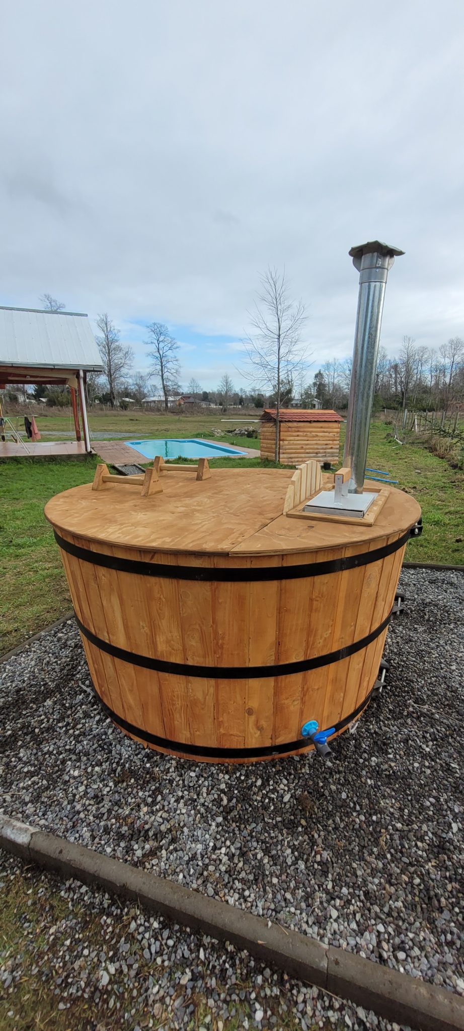 Tinaja cónica elaborada en madera de Oregón o Ciprés 2.20 mts. de diámetro, capacidad 8 personas.